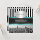 Convite NYC Skyline BW Blk Whit Strp Teal P Chá de panela