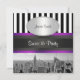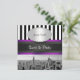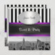 Convite NYC Skyline BW Blk Wht Strp Purpl P Sweet 16 Party