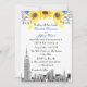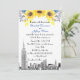 NYC Skyline Etch Parecem Pretos Brancos, Girassol nº 2 Borda Floral - Convite para Casamento ============ Convites e acessórios personalizáveis com uma visão em preto e branco gravada do horizonte emblemático Nova Iorque com ESB e uma borda floral.=========== 2020 ©NYCisMi usar Todos os direitos reservados
