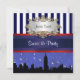 NY City Skyline Silhouette Blue Starry Sky nº 2, Marinho Blue & White Stripe Invitation Collection - Doce 16 Convites de festas Personalizáveis Invtions e acessórios com uma vista de silhueta icônica do Nova Iorque que apresenta o Edifício de Ruas Emp, o Edifício Chrysler contra um céu azul estrelado. Eles também apresentam um padrão listrado azul e branco marinho, uma fita vermelha e azul e uma etiqueta de gradiente branco com a sua escolha de uma imagem de prata ou dourada. Este produto faz parte de um conjunto de designs correspondentes que são facilmente personalizáveis para muitas ocasiões e eventos. Se você precisar de placas RSVP separadas, Notas de agradecimento, Carimbos, ímanes ou outros acessórios, por favor verifique nossas outras listas. 2012 ©NYCisMyMuse