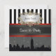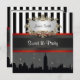 Silhueta Skyline de NY City, céu estrelado escuro, coleção de convites para distribuição de riscas negras e brancas - Doce 16 convites personalizáveis e acessórios com uma vista de silhueta icônica do Nova Iorque que apresenta a Rua Emp Construindo o prédio Chrysler contra um céu estrelado escuro. Eles também apresentam um padrão listrado preto e branco, uma fita vermelha e preta e uma etiqueta de gradiente branco com a escolha de uma imagem de prata ou ouro. Este produto faz parte de um conjunto de designs correspondentes que são facilmente personalizáveis para muitas ocasiões e eventos. Se você precisar de placas RSVP separadas, Notas de agradecimento, Carimbos, ímanes ou outros acessórios, por favor verifique nossas outras listas. 2012 ©NYCisMyMuse
