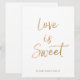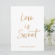 Convite O Amor é Doce Placa | Letreiro de Rosa Dourada Est