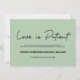 Adiamento Sentido: 'Amor é Paciente' Sage Green Wedding Postponement Invitation A Gentle Note of Postponement: Em meio às correntes de incerteza, "Amor é Paciente" serve como um mantra sentida e a fundação do nosso sábio convite para o adiamento do casamento verde. Misturando elegantemente uma mensagem compassiva com uma paleta de cores serenas, esta mudança de placa de planos transmite delicadamente a sua notícia, envolvendo-a em compreensão e positividade. Embrace of Patience: O entrelaçamento da frase compassiva "Amor é Paciente" e sua mensagem personalizada transforma esse anúncio delicado em um abraço confortável, segurando suavemente seus convidados e família em seu gentil anúncio, e fornecendo consolo entre os planos de mudança. Serene Elegance: Envolvido em um simples mas elegante design, o cenário verde sábio aliado à tipografia negra moderna produz um eterno e uma estética tranquila. Esta design reflete a graça e a serenidade, reconhecendo a postura com que você navega através desses ajustes imprevistos. Sementes de Compreensão: Sua história de amor continua florescendo, mesmo entre a pausa, e esse cartão, enquanto anunciava um atraso, também semeia compreensão e antecipação para a celebração que se avizinha, embrulhada na força inabalável de seu amor e paciência. Criado com cuidado: Nosso convite garante que sua mensagem de adiamento seja envolta em calor, fornecendo um amplo abraço que gentilmente informa seus entes queridos sobre o reescalonamento, enquanto afirma que sua jornada rumo à felicidade conjugal continua, pacientemente esperando pelo momento perfeito para florescer. Com compreensão e ternura no seu âmago, nosso sábio "Amor é Paciente" convite para adiamento de casamento verde entrelinha uma mensagem compassiva com elegância eterno. Assegure-se de que seus entes queridos sejam gentilmente mantidos dentro de uma nota de paciência e graça enquanto você navega pelo reescalonamento do seu dia especial, afirmando que a jornada do amor e da celebração continua pacientemente, abraçando todo momento.