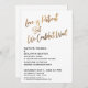 Convide seus convidados para a celebração do seu casamento com a ajuda desses simples cartões de convite. Para o cabeçalho, usei uma fonte manuscrita casual e moderna para criar uma sobreposição de tipografia gráfica que diz "O amor é paciente, mas não pudemos esperar". Esta imagem foi adornada com um efeito de folha de ouro falso liso para um resultado festivo. Preencha os espaços em branco do modelo com seus detalhes para personalizar o design. Todas as camadas permaneceram desbloqueadas para que você também possa clicar para personalizar ainda mais e reposicionar o texto ou até mesmo alterar tamanhos ou fontes. Altere o fundo para qualquer cor que preferir. Alternativamente, você pode optar por adicionar uma imagem ao verso. Por favor, não hesite em entrar em contato para obter assistência com a personalização.