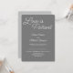 Convite de recepção de casamento elegante e moderno na cor cinza. Este design apresenta uma tipografia moderna para as palavras "O amor é paciente". Personalize este anúncio de casamento que também serve como convite de recepção com os nomes dos noivos e todos os detalhes da festa sobre a troca de votos e cortejo. Este layout elegante e sofisticado é fácil de personalizar.