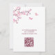 Este chá de panela "Love is in bloom" apresenta flores bonito de cereja rosa e duas borboletas sobre fundo branco. Na parte de trás está um código QR para o registro de presentes da pessoa de honra.
