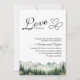 Um convite elegante para o casamento com montanhas de aquarelas e pinheiros que você pode personalizar com seus detalhes.
