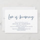 Cartão de Chá de panela da festa de chá à tarde (O amor está se preparando). Vamos chá a noiva. Convide os convidados com este Cartão de Convite perfeito. Adicione os detalhes do seu chá de panela em caracteres azuis / letras correspondentes.
