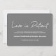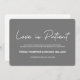 Cinzas modernas "O Amor é o Paciente" Convite para Adiamento de Casamento: Abraçando o Amor e a Resiliência À luz da situação atual, entendemos que alguns casamentos precisam ser adiados. Queremos transmitir esta mensagem de amor, esperança e resiliência para manter nossos convidados e família informados sobre nossa mudança de planos. Nossa Cinza moderna "O Amor é Paciente" Convite para Adiamento de Casamento nos permite compartilhar essa mensagem com você de uma forma simples e elegante. As palavras "O amor é o paciente" carregar um significado profundo, lembrando-nos que o amor persiste e se torna mais forte diante dos desafios. Abraçando esse sentimento, acreditamos que o amor nos guiará por esses tempos incertos, e esperamos ansiosamente o dia em que podemos celebrar nosso amor com você. Este convite apresenta uma moderna e sofisticada cinza mod e tipografia branca, simbolizando a calma e a força que encontramos em nosso amor. A design é intencionalmente mantida simples de focar na mensagem de amor e resiliência que queremos compartilhar com vocês. À medida que navegamos por esses tempos sem precedentes, entendemos que os detalhes podem mudar e queremos mantê-lo atualizado. O texto deste convite é perfeitamente personalizável, permitindo-nos incluir informações adicionais, como o nosso site de casamento e a nova data em que se torna disponível.