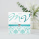 O doce azul da cerceta elegante dezesseis convites do aniversário com diamante deu forma ao coração. Cerceta e tema branco da cor.