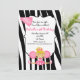 Dois, quatro, seis, oito. Come comemora com este convite bonito do aniversário do cheerleader. É ajustada em um fundo preto e branco do impressão da zebra. Ao longo do centro inferior é um cheerleader de cabelo louro que veste um uniforme cor-de-rosa que salta no ar que faz um toque do dedo do pé. Tem fitas em seu cabelo. Há um grande Tag branco no centro onde; você personaliza o convite com sua informação do partido. O canto de superior esquerdo é um megafone no rosa claro e quente com palavra "elogio" nele. Verifique para fora o muito outro design e cores em nossa loja. ilustrações do ©JW