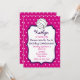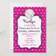 O convite de aniversário de uma menina que caracteriza um fundo cor-de-rosa com as bolinhas brancas na parte dianteira e na parte traseira. A parte dianteira caracteriza o quadro roxo brilhante com escrita roxa e cor-de-rosa. Ilustração do voleibol na parte superior.