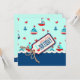 Cartão de aniversário náutico doce do tema com veleiros, caranguejos, e âncoras para o primeiro aniversário. guita e Tag do efeito 3D.