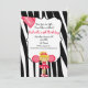 Convite O aniversário vermelho listrado zebra do