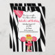Dois, quatro, seis, oito. Come comemora com este convite bonito do aniversário do cheerleader. É ajustada em um fundo preto e branco do impressão da zebra. Ao longo do centro inferior é um cheerleader de cabelo louro que veste um uniforme vermelho que está guardarando poms do pom em suas mãos. Tem fitas em seu cabelo. Há um grande Tag branco no centro onde; você personaliza o convite com sua informação do partido. O canto de superior esquerdo é um megafone no rosa claro e quente com palavra "elogio" nele. Verifique para fora o muito outro design e cores em nossa loja. ilustrações do ©JW