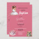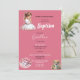 Um convite elegante e moderno, cor-de-rosa, para o Batismo floral, com uma menina a rezar uma fonte e calçados Batismo (poderiam substituí-los por fotografias próprias) ou claro, se não necessário. Também os campos de texto modelo que permitem adicionar nomes de pais, cerimônia, recepção e rsvp.