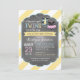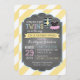 Fundo amarelo e branco do impressão da listra com o tutu da ligação em ponte das bolinhas e ligação em ponte da listra com o laço no cartão do convite do chá de fraldas do menino e da menina do gêmeo do clothesline.