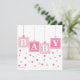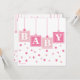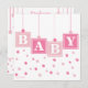 Deixe seus convidados saber que um bebé doce está na maneira com este design de bloco bonito do bebê nas máscaras do rosa no papel de prata.
