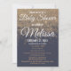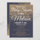 O falso glamoroso, chique, e elegante imprimiu o brilho sparkly do ouro em azuis marinhos, convites do chá de fraldas. Este design clássico e sofisticado é perfeito para que a mamã elegante, na moda, e à moda seja. Personalize com sua própria mensagem na parte dianteira e uma inicial personalizada do monograma na parte traseira. Todo o design do impressão da foto.