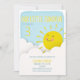 Você é meu tema da festa de aniversário da luz do sol que caracteriza uma ilustração de uma luz do sol com a cara que espreita para fora entre das nuvens brancas sobre um fundo inspirado aguarela do céu azul.