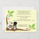 As características deste design do contemporâneo uma noiva da coruja que vestem um véu curto com pérolas e um vestido de casamento e uma coruja preparam completo com o chapéu alto, o laço e as caudas. O casal está sentando-se em um ramo de árvore e é moldado por flores e pelas folhas coloridas. Todo o texto neste chá de panela lunático é completamente customizável para sua informação do partido.