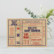" Tickets… bilhetes… Obtenha seus bilhetes aqui a um chá de fraldas fantástico dos esportes!" Estes convites do bilhete do estilo do vintage são maneira perfeita de dar boas-vindas ao lil'slugger novo do seu amigo na cidade! Projetado após bilhetes dos esportes do vintage do adiantado estes convites 1900's tenha a nostalgia contudo as cargas do spunk, perfeitas para todos os esportes que amam a família.