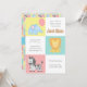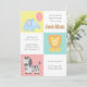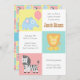 Design colorido dos desenhos animados dos animais bonitos do jardim zoológico que consistem no elefante azul, no leão alaranjado e na zebra. A página reversa consiste no mesmo design arranjado em um estilo do teste padrão. O design é ponto morto do género, fazendo a apropriada para o bebé e a menina. Faça seu chá de fraldas extremamente especial com este convite adorável do chá de fraldas que está indo imprimir seus convidados. É igualmente apropriado para festas de aniversário do tema dos miúdos como o safari e o tema da selva. Convide pode facilmente ser personalizado com seus detalhes do partido. Favoritos para festas de harmonização disponíveis. Projetado pelo Doodle oxidado.