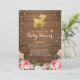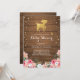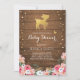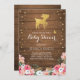O ♥ A bonito e chá de fraldas do divertimento convida para um chá de fraldas com um tema dos cervos. Com flores. Cores do rosa e do ouro para um chá de fraldas da menina, em um fundo de madeira.