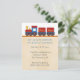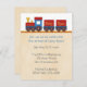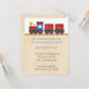 Convite do chá de fraldas com uma ilustração adorável do trem do amarelo, o vermelho e o azul em trilhas do trem comemorar a chegada de seu bebê. Personalize facilmente com seus detalhes do partido. Projetado pelo Doodle oxidado.