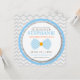 Um bebé feito sob encomenda convida a caracterização do grande design do laço e de listras diagonais na combinação de cores azul e alaranjada com o carvão vegetal