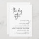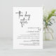 Anuncie a sua alegria para sempre em estilo com o nosso moderno cartão de convite de festas de elopemento de casamento. O nosso cartão "Feliz Nunca Depois do Convite de festas" é ideal para casais que decidiram fugir e que querem acolher um partido para celebrar o seu sindicato. Com seu design sofisticado, mas lúdico, este convite certamente define o tom de um evento inesquecível. O cartão de convite apresenta um design minimalista com um esquema preto e branco, adicionando um toque de elegância do eterno à sua celebração.