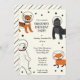 Jogue fora desta festa mundial com estes convites de festas personalizados. Estes convites apresentam ilustrações bonitinhas de animais em capacetes espaciais com tigre, urso polar, gorila e raposa com sotaques de estrelas pretas, fazeres perfeitos para as crianças do espaço exterior e festas de aniversário de planetário.