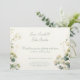 Convite de casamento elegante, com folhas moles, de cor aquosa eucalipto e de prata. A delicada vegetação adiciona um toque de beleza natural e sofisticação, perfeito para um casamento de jardim ou tema inspirado na natureza. A design minimalista, com seus sutis sotaques botânicos, cria um olhar eterno e sereno. Adicione seus próprios detalhes de casamento, este convite é na moda e clássico, perfeito para dar o tom para sua celebração de casamento.