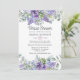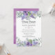 Trendy virtual bridal ou chá de fraldas com folhas de eucalipto e plantas suculentas misturadas com flores em acentos de lilás pastel, roxo e violeta.