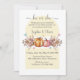 Experimente o encantamento do nosso adorável design de aquarela com duas abóboras cercadas por flores delicadas. Esta bela e super fofa trabalho de arte traz capricho e charme ao seu gênero de bebê revela convites de festas.