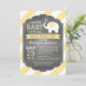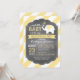 O fundo diagonal amarelo e branco do impressão da listra com género de sopro dos corações do elefante branco revela o cartão do convite do chá de fraldas.