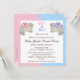 O género cor-de-rosa, azul e branco personalizado adorável do bebê revela convites do chá de fraldas do partido com coelhos de coelho cor-de-rosa e azuis bonitos do brinquedo em umas uchas com balões. O texto é inteiramente customizável encontrar suas necessidades e os objetos do design podem ser movidos e re-feito sob medida. Os convites são ilustrados em ambos os lados. Um outro produto do divertimento dos gráficos Groovy.