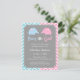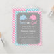 Convide seus convidados a compartilhar em sua notícia especial e a mantê-la supr se o bebê é menino ou menina com este convite. Este convite elegante e elegante tem dois elefantes do bebê, um no azul e o outro no revestimento cor-de-rosa. Fundo cinzento neutro do género de modo a para não dar afastado o género. Fundo do teste padrão de ziguezague azul, cor-de-rosa e branco da viga. Personalize facilmente com seus detalhes do partido.