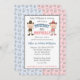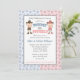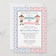 Um género temático ocidental revela o convite de festas. Ilustrações bonitos de um vaqueiro e de uma vaqueira pequenos com um teste padrão em ferradura cor-de-rosa e azul. Doodles de Scrappin do © dos gráficos em www.scrappindoodles.com