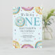 Comece com estilo as celebrações de festas de primeiro aniversario 'Grande' da sua pequena, com este convite de festas inspirado na rosquinha. O convite pode ser personalizado para incluir o nome e os detalhes da sua pequena festa. Este convite está em azul - uma cor tradicional para um menino. Ideal para qualquer época do ano, porque as rosquinhas são relevantes durante todo o ano.