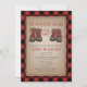 Ilustração de dois pares de botas elevadoras adultas com cadarços vermelhos dispostos em forma cardíaca. O estoque de papelão é inspirado na borda vermelha e negra da xadrez de búfalos e no lado oposto. O texto vermelho no topo diz, "A aventura começa"