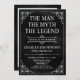 Ele É O Homem O Mito A LENDA! Sua vida tem sido uma aventura incrível e é hora de celebrar seu legado e ele. Este papel preto texturizado com o tipo branco e o convite de aniversário do 70 de canto branco com o convidado de honra no verso é perfeito para convidar amigos e família a se juntarem a vocês para homenagear e celebrar este incrível aniversário de marcos! Para ver seus convites exclusivos, clique em "Personalizar este Modelo" e digite suas informações e carregue uma foto favorita. É super fácil!