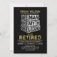 "O Homem que Mito a Legenda se aposentou" design de tipografia em ouro negro e branco, personalizou seu próprio nome e detalhes da festa. convites para aposentadoria de excelente.