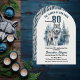 "O Líder do Nosso Pacote Está Virando 80", 80 de aniversário para o seu Alpha favorito. Possui um lobo solitário majestoso silenciado contra uma floresta verde.