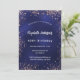 Um convite moderno, na moda e glamouroso para uma festa de aniversário 40ª (ou qualquer idade). Um fundo azul marinho, decorado com brilho azul rosa, brilhos. A cor azul é irregular. Personalize e adicione seu nome e detalhes da festa.