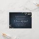 Design de folhagem botânica de cor aquática mínima moderna em fundo azul-marinho moody, cartões de adiamento simples e elegantes para informar aos seus convidados de casamento as informações atualizadas. Ver todas as peças correspondentes na coleção