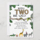 A selva-corcunda, animal de festas selvagens, convida para a festa de aniversário de dois anos de velhos. Perfeito para qualquer sexo. Cartões apresenta lindos animais da selva, crocodilo, macaco, girafa, rinoceronte e zebra vestidos com chapéus de festa.