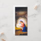 Cartão com a pintura religiosa de Vladimir Borovikovsky O Nascimento de Cristo (1757-1825). A mãe Maria segura o menino Jesus em seu berço em um estábulo cheio de animais, anjos e pastores observando. Um presente significativo para o Natal e celebrações religiosas.
