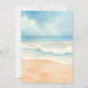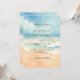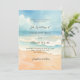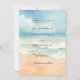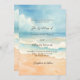 Um convite de casamento para um casamento na praia, casamento de destino. Uma praia arenosa, ondas oceânicas e um céu azul como fundo.