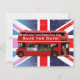 Esta placa Save-the-Date personalizada apresenta um conhecido barramento vintage vermelho Routemaster, um verdadeiro símbolo de Londres e Inglaterra com o bandeira da União.